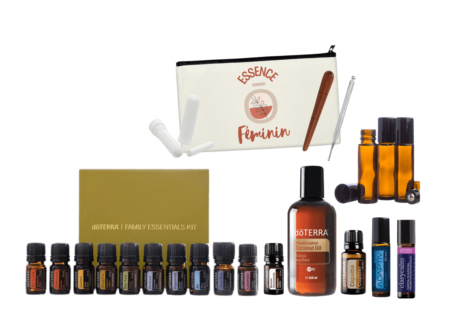 Un kit complet est inclus dans la formation (huiles essentielles, roll-on, inhalateurs, bâtons d’acupression, trousse Essence ō Féminin).